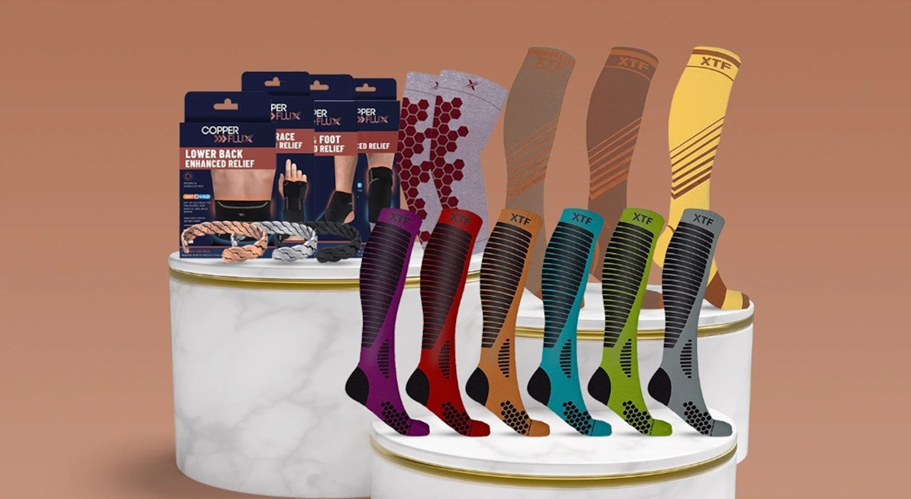CopperFlux: calcetines de compresión y accesorios terapéuticos