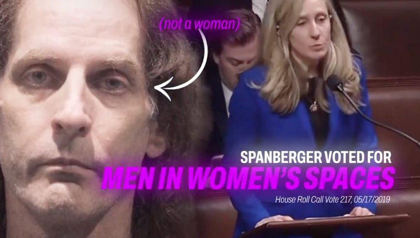 Earle-Sears también vinculó repetidamente a Spanberger a Cox en su página de Facebook. «El delincuente sexual registrado Richard Cox, un hombre adulto, retrocedió repetidamente en los vestuarios de las niñas y se expuso a los niños. Una vez más. Y otra vez», Earle-Sears escribió. «Abigail Spanberger votó para darle el derecho de estar allí». Eso es una mentira.