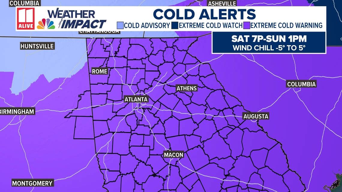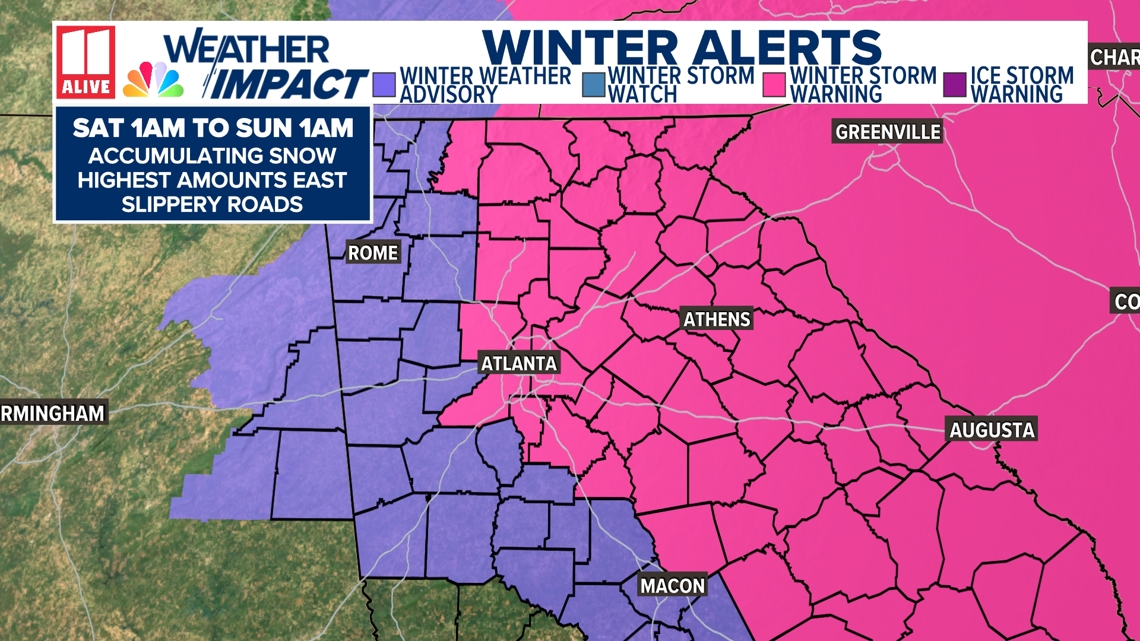 Hay avisos de tormentas invernales y avisos de clima invernal en gran parte del norte de Georgia.