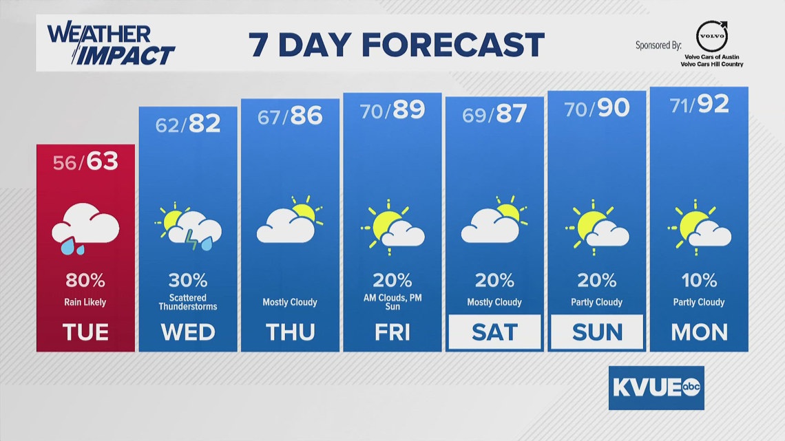 El equipo meteorológico de KVUE continuará monitoreando de cerca este pronóstico en desarrollo. Mientras tanto, el pronóstico ampliado se puede encontrar a continuación.