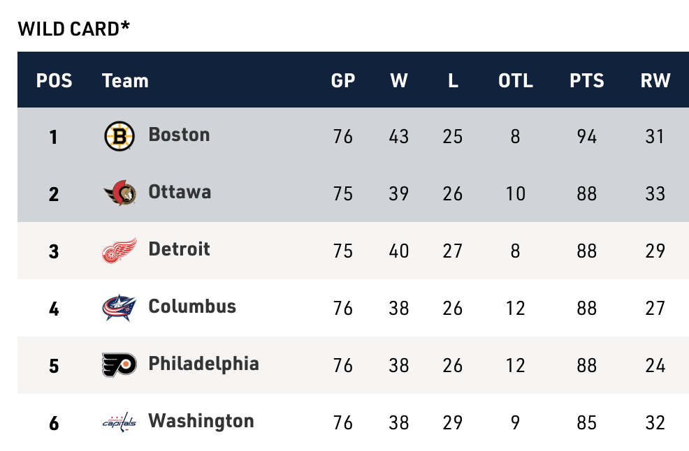 A medida que nos acercamos al fin de semana largo, la mirada de hoy a las carreras por los playoffs se centra en los juegos más importantes en la agenda. Para cuando terminemos el lunes, nos quedará aproximadamente una semana y media de la temporada regular y el panorama de los playoffs será muy diferente al de hoy.