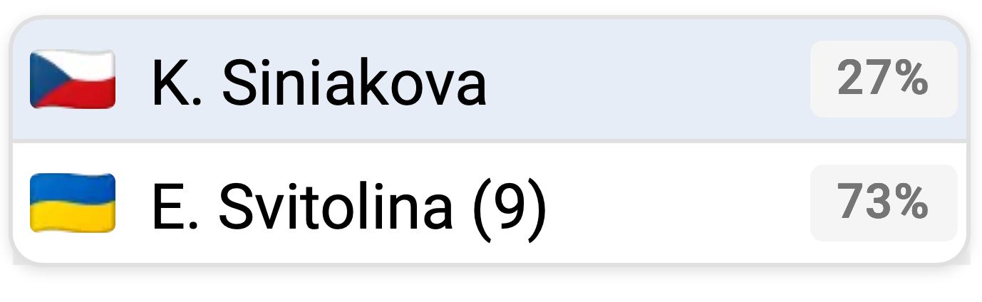 Podríamos ver otro partido reñido entre dos jugadores consistentes con fuertes habilidades defensivas y capacidad para frustrar a los oponentes. El Simulador PFSN le da a Svitolina un 73% de posibilidades de llegar a la cima, y creemos que la novena cabeza de serie continuará su notable racha y reservará su lugar en los cuartos de final.