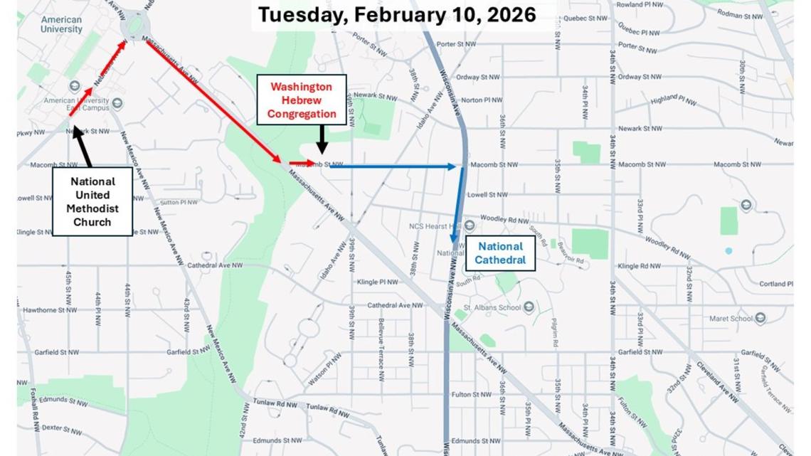 Una caminata de unidad a lo largo de Embassy Row comenzará poco después de que salgan de la iglesia.