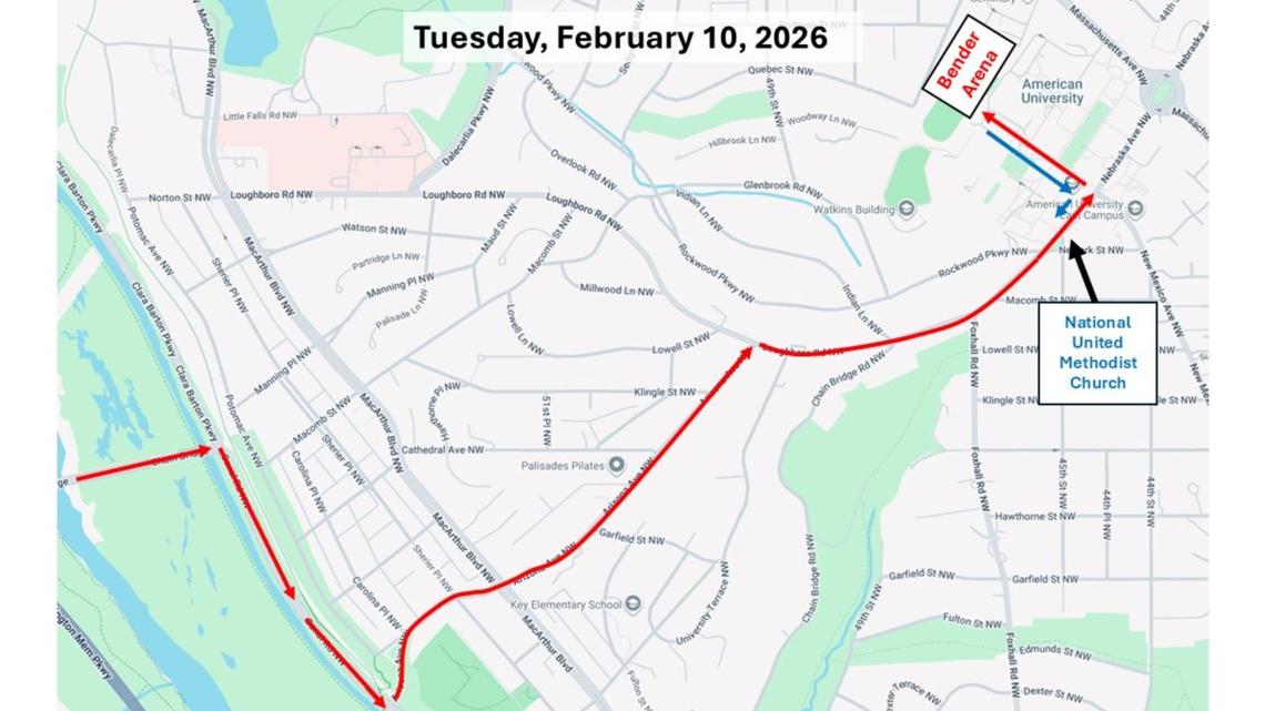 La Caminata por la Paz hará paradas en el Monumento a la Paz en Capitol Hill y en la Iglesia de San Marcos en Capitol Hill antes de la marcha final hacia el Monumento a Lincoln. Se implementarán cierres rodantes durante este tiempo y los conductores deben esperar un mayor tráfico en esas áreas.
