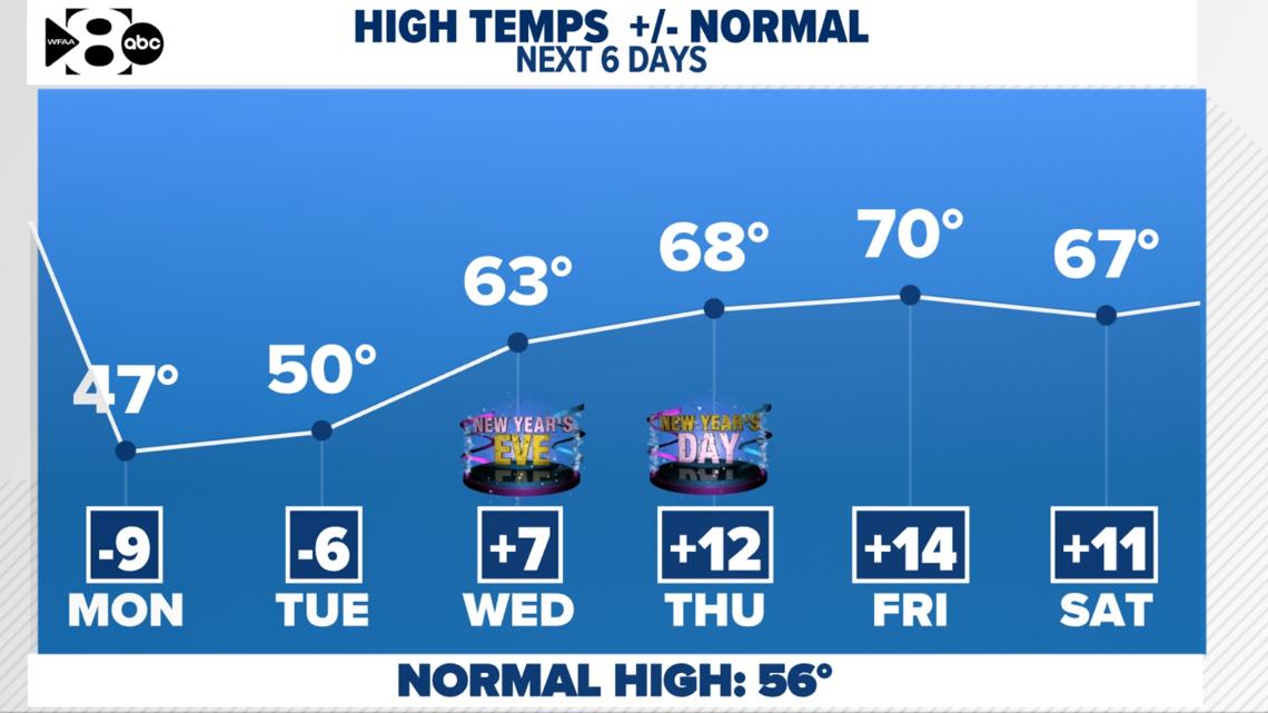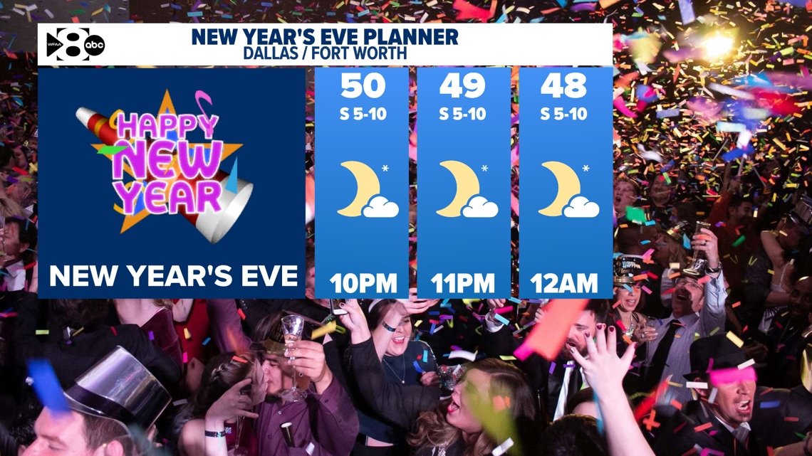 Las temperaturas vuelven a los 60 grados en la víspera de Año Nuevo, pero la noche en sí será muy fresca. ¡La buena noticia para cualquiera que salga es que parece seco con un viento ligero!