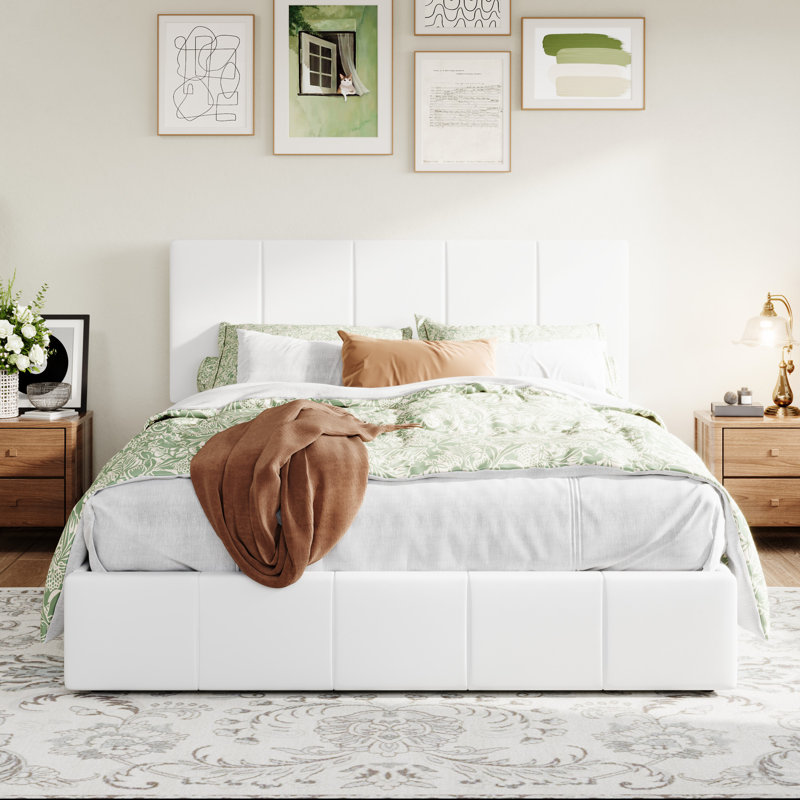 Cama de plataforma tapizada con elevación hidráulica y cabecera ajustable, Queen