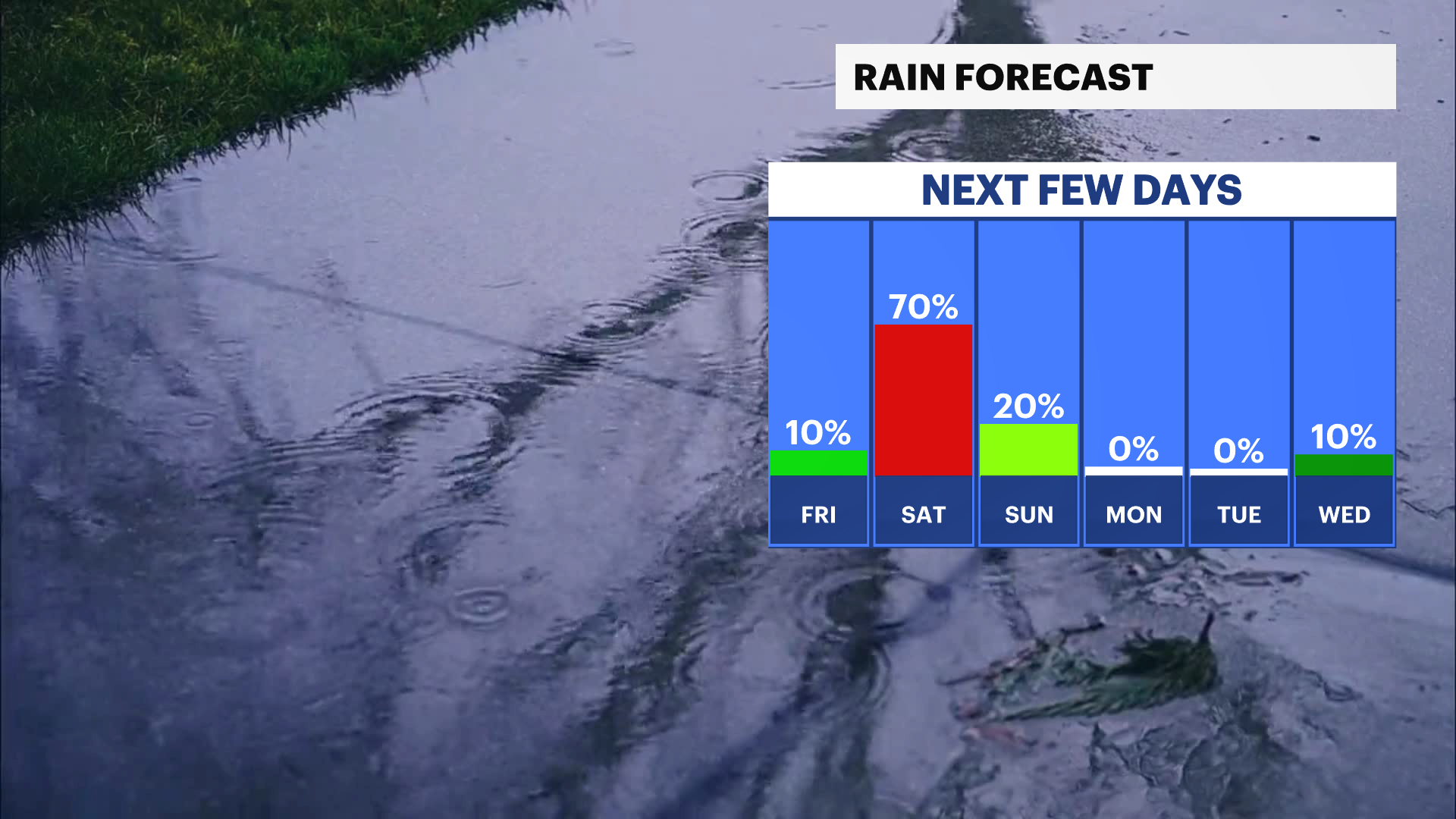 Continuar vigilando de cerca la ducha y las oportunidades de la tormenta del sábado por la noche. La humedad, el calor y la cantidad justa de inestabilidad podrían hacer que las tormentas enciendan durante la segunda mitad del día. Estos podrían permanecer en el domingo temprano. Las temperaturas se ajustarán drásticamente a medida que avance el fin de semana. Se espera que los máximos del domingo se encuentren a mediados de los años 70, con mínimos de regreso a los años 50 más altos. Sigue un período fresco y cómodo para la próxima semana.