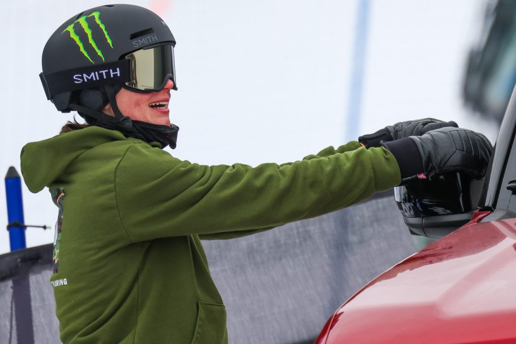 Mia Brookes, de Gran Bretaña, quien ganaría el concurso, se relaja en el área de meta después de una de sus carreras en la final femenina de snowboard estilo Slopestyle en los X Games Aspen el viernes 23 de enero de 2026 en Buttermilk Ski Area. Austin Colbert/The Aspen Times