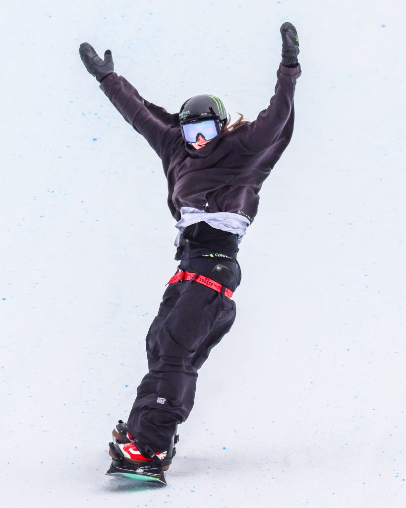Su carrera por la medalla de oro incluyó un Cab 2, un Cab 1 en la parte trasera 3, un cambio en el riel Battleship, luego un frontal 3, un trasero 1260 y un Cab 1440.