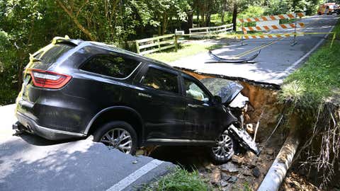 Segunas de las inundaciones de la tormenta tropical Chantal cerca de Chapel Hill, Carolina del Norte.