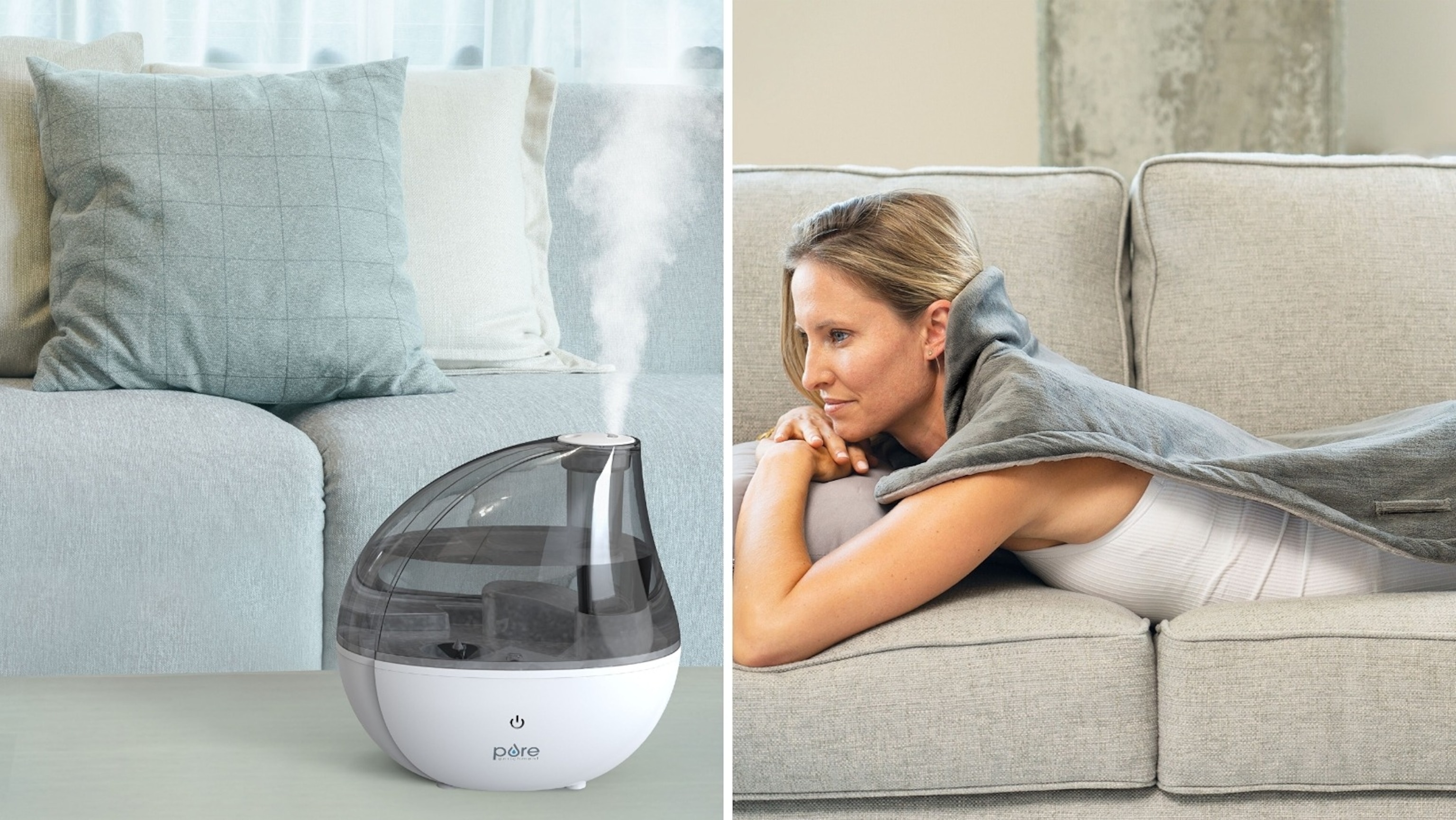 Improve everyday wellness. With more than 24,000 positive reviews, the MistAire Silver Ultrasonic Cool Mist Humidifier is easy to use and clean, designed to moisturize the air in every room of your home, from bedrooms to living spaces, offices and beyond. It runs quietly for up to 25 hours on the low setting or 12 hours on the high setting before needing to refill the tank, with a built-in optional soft glow night light. The PureRelief XL Extra-Long Back and Neck Heating Pad temporarily relieves muscle pain and soreness in your shoulders, back and neck. Combat aches and joint pains to reduce any muscle stiffness and offer instant relaxation, whether you need to lessen post-workout tension or quick relief from sitting all day in the office. Detachable LED Controller to adjust temperature, plus the pad is machine washable. Air purifier, fabric steamer, ear thermometer and more available. Limit five per order. Shipping is $4.99.