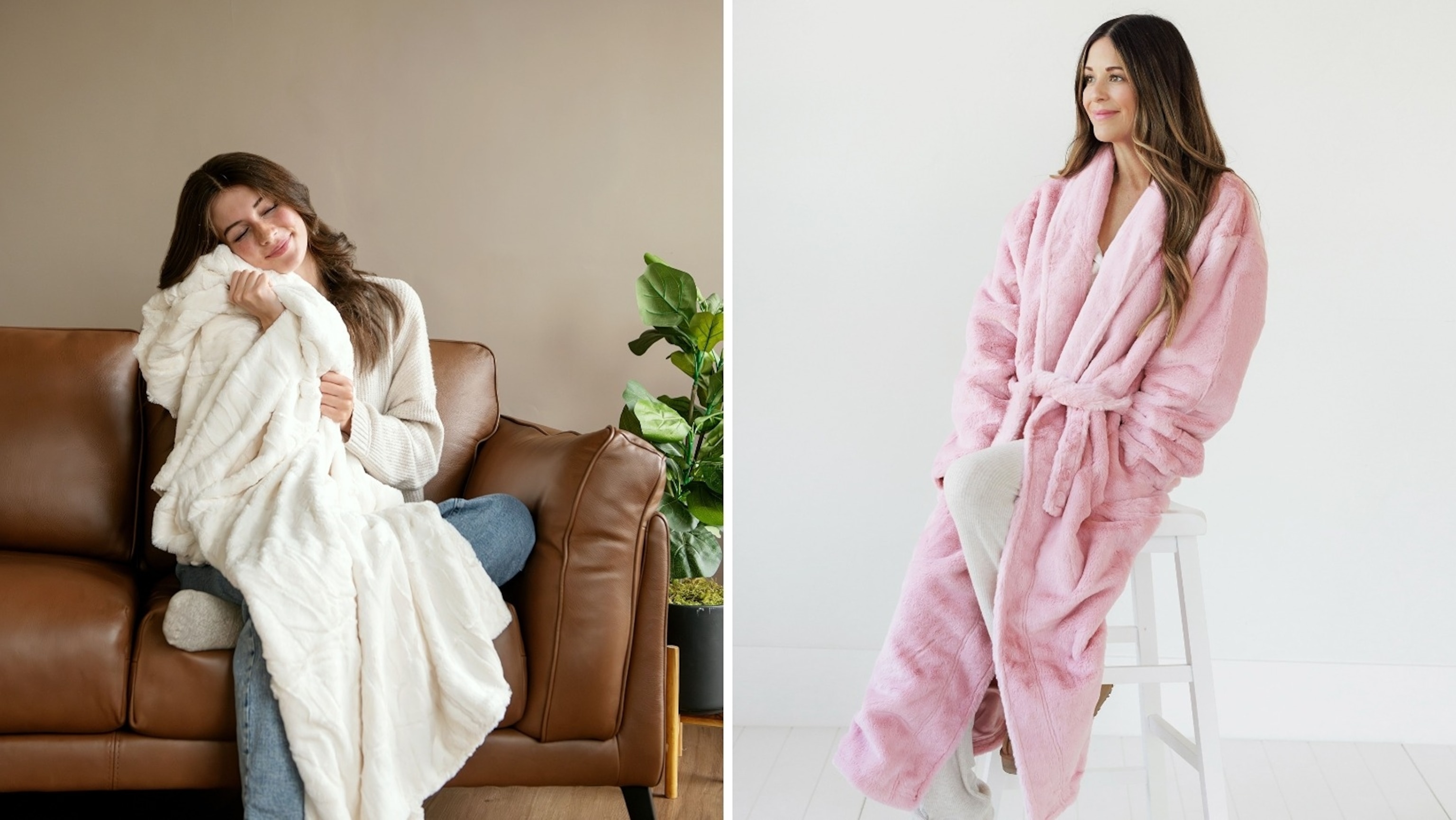 Wrap yourself in luxury. Started by a mom who wanted to comfort her daughter when she was ill, Minky Couture combines the softness of a baby blanket with the stylish design of something you’d want to put on display. The classic Hugs styles are crafted from plush, stretchy material, and luxuriously cozy while still being machine-washable, blending elegance and convenience seamlessly. Sorbet styles are sleek and soft, perfect for travel or the warmer months, offering a thinner, lightweight option. The Classic Minky Couture Robe features a micro-plush lining, inner and outer ties, a plush collar, and pockets for convenience and ease. Free shipping!