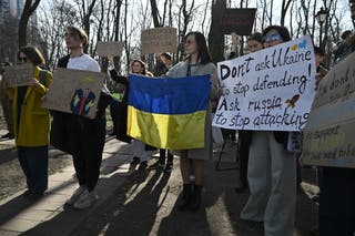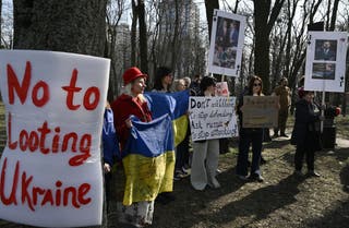 En imágenes: los ucranianos protestan fuera de la embajada de los Estados Unidos en Kyiv