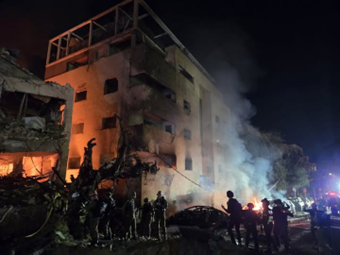 Daños a un edificio residencial en la zona de Gush Dan. Crédito: Servicios de Bomberos y Rescate de Israel