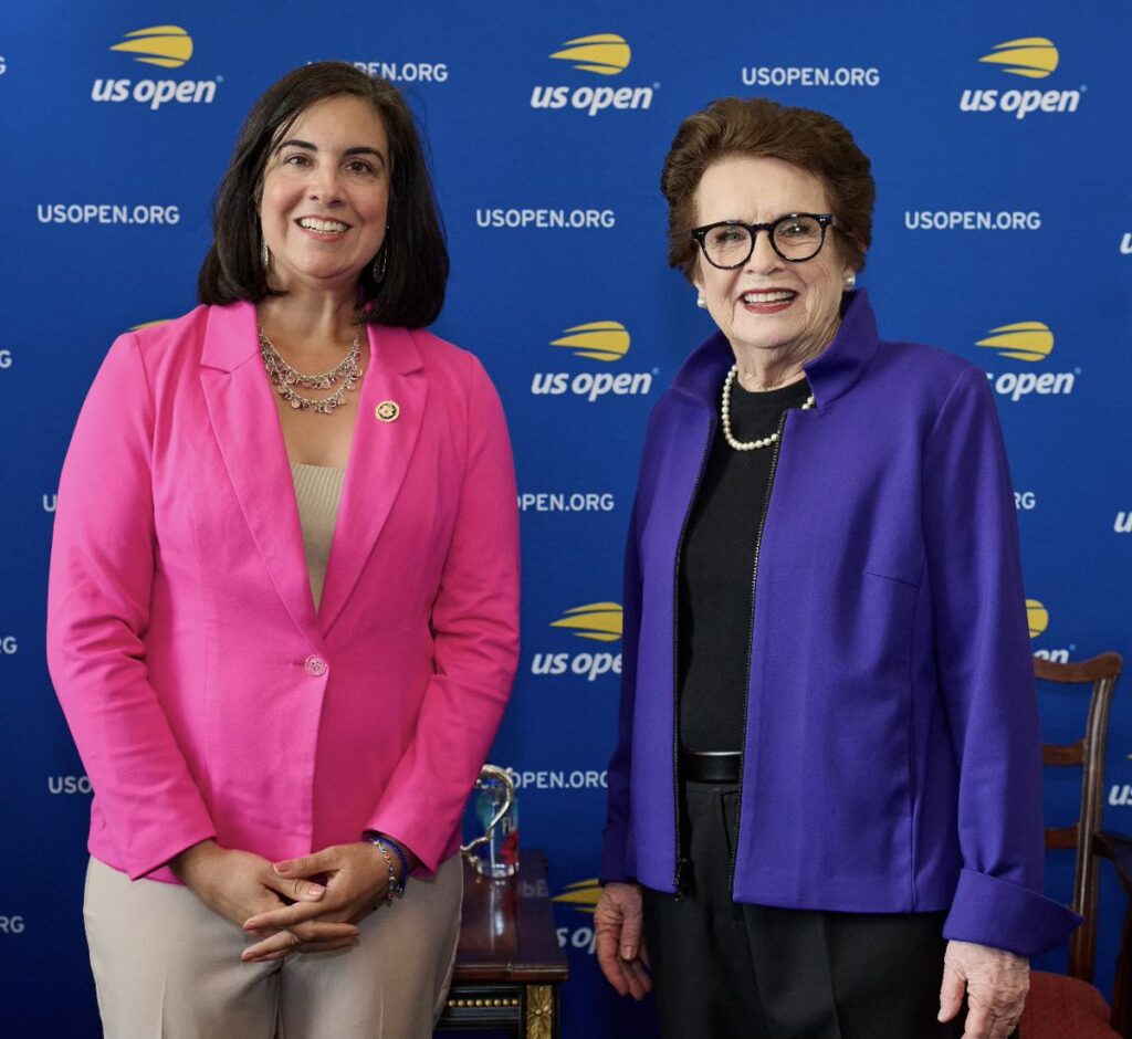 Mientras toma un partido, la representante estadounidense Nicole Malliotakis, quien representa al Distrito 11 del Congreso que cubre parte de Southern Brooklyn y todos de Staten Island, se reunió con la leyenda del tenis Billie Jean King.