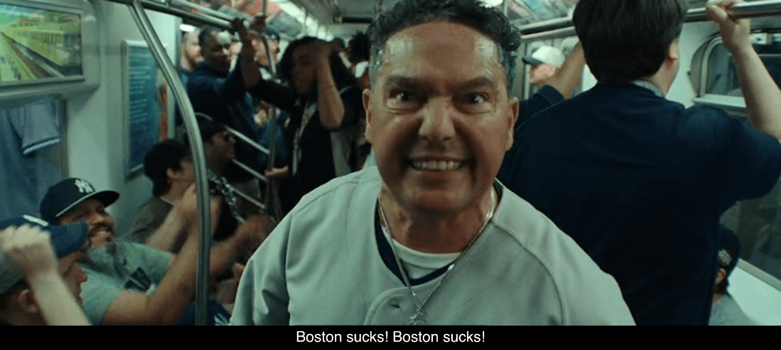 Pero Spike no limita su trolling a los Celtics esta vez; Deja que los amargos rivales de sus amados Yankees de Nueva York, los Medias Rojas, también lo tengan. Una de las secuencias más importantes de la película encuentra a King, que está vestido de negro con una gorra de los Yankees en la cabeza, como un verdadero neoyorquino, reclutando el metro de la ciudad desde Brooklyn al Bronx mientras lleva el dinero del rescate para el secuestrador. A medida que el tren 4 se acerca al Yankee Stadium en East 161st Street, se llena progresivamente de los fanáticos de los Yankees, que comienzan a estallar alternando e improvisados cantos de «¡Let’s Go, Yankees!» y «¡Boston apesta!» Y Lee en realidad se inclina en el momento. Un fanático particularmente beligerante, interpretado por Nicholas Turturro, recibe uno de los tiros directos de la firma del director, ya que se suelta: