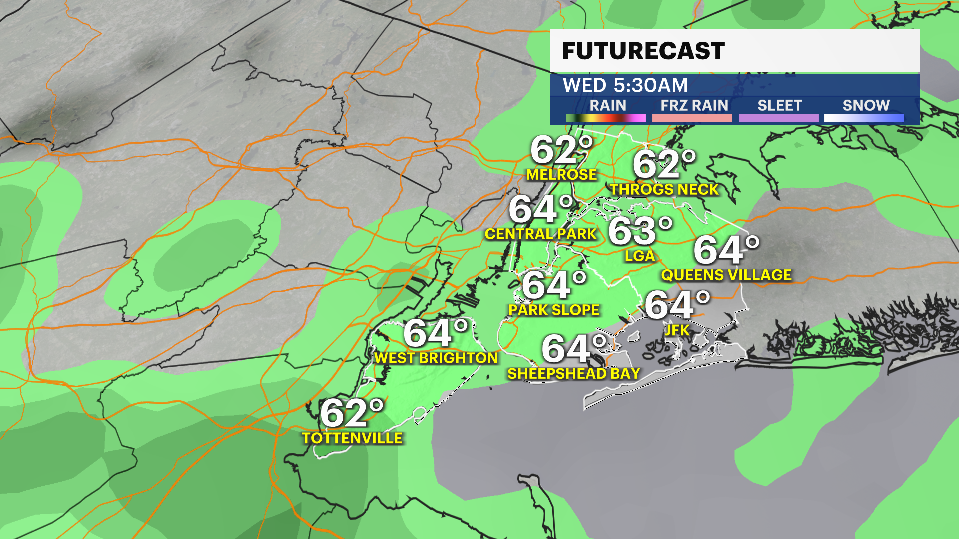 - Es un fresco, húmedo y ventoso esta mañana. Las temperaturas están en los 60 bajos a mediados de los 60.