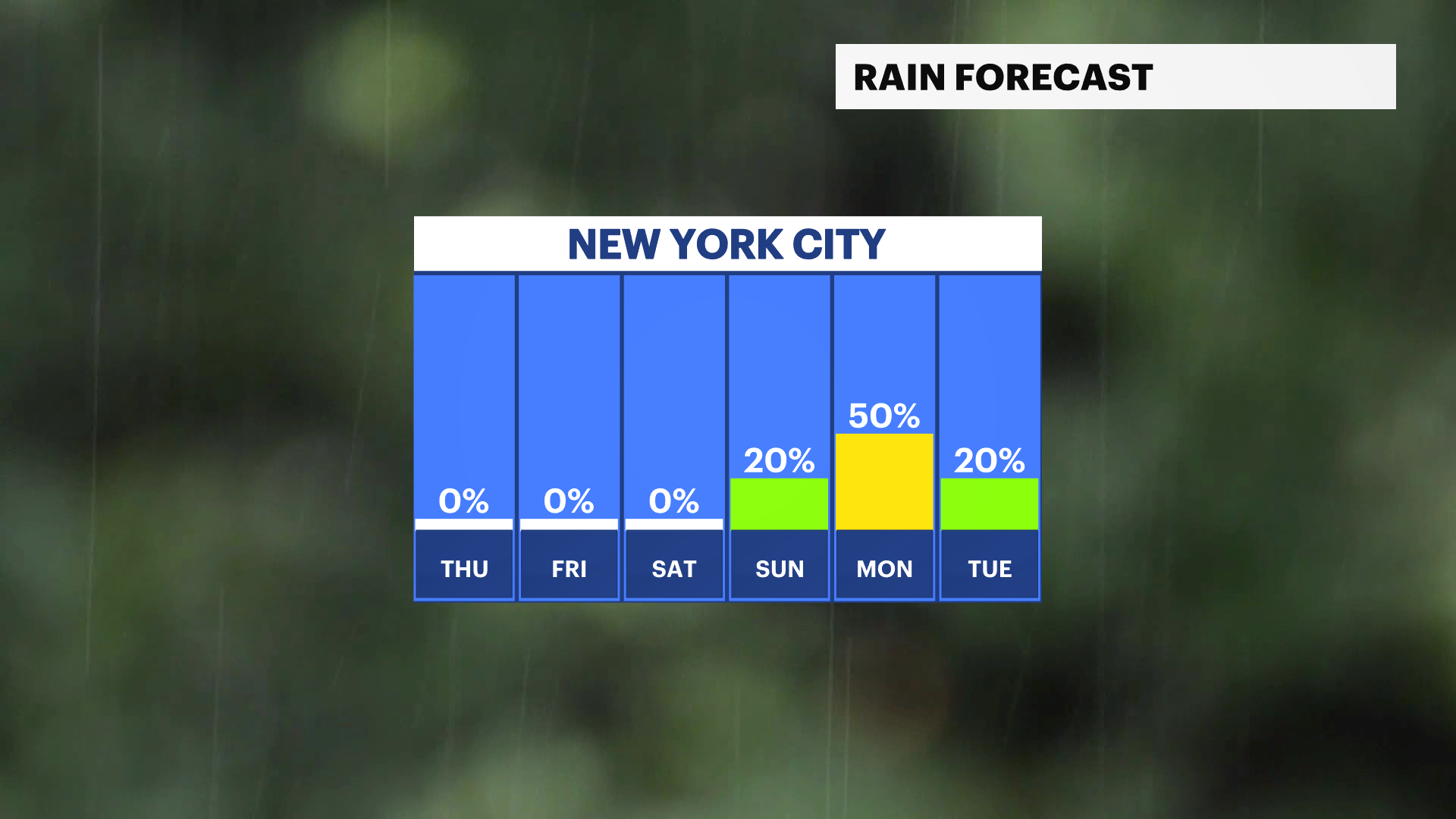 - Nuestra próxima posibilidad de lluvia es de la noche a la mañana del domingo a lunes. Un frente frío débil se moverá a través del área que brinda una ligera oportunidad para algunas duchas. Estén atentos para las actualizaciones.