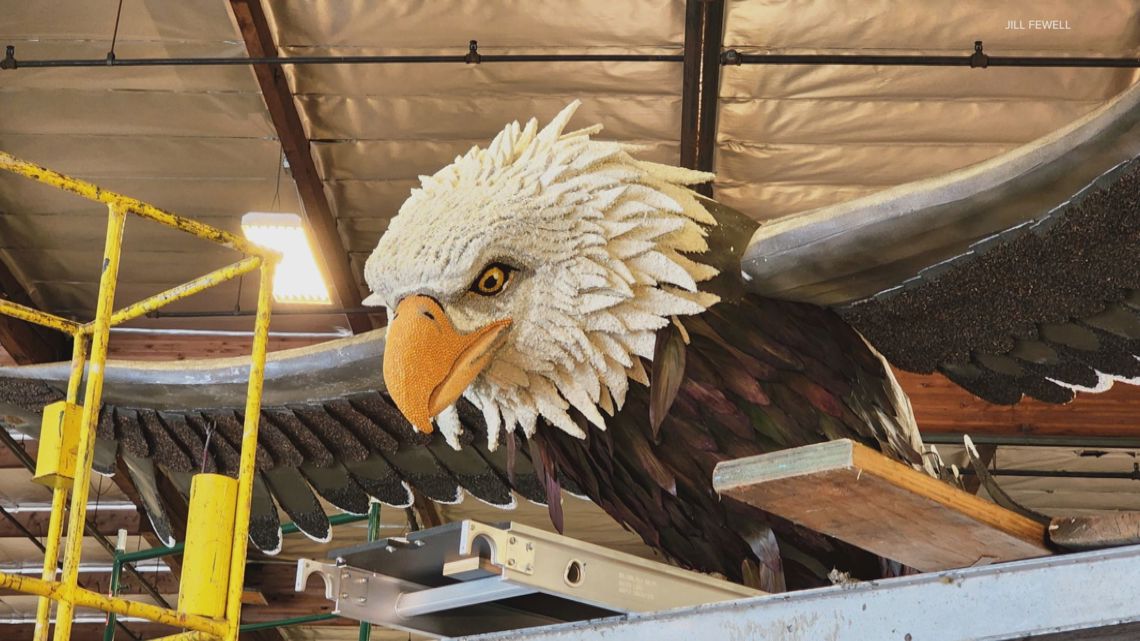 «Son tres águilas calvas americanas. Básicamente, estarán encima de la carroza y todas se moverán», dijo un voluntario. Otro agregó que un águila funciona con sistema hidráulico y se elevará unos 35 pies por encima de la carroza durante el desfile.