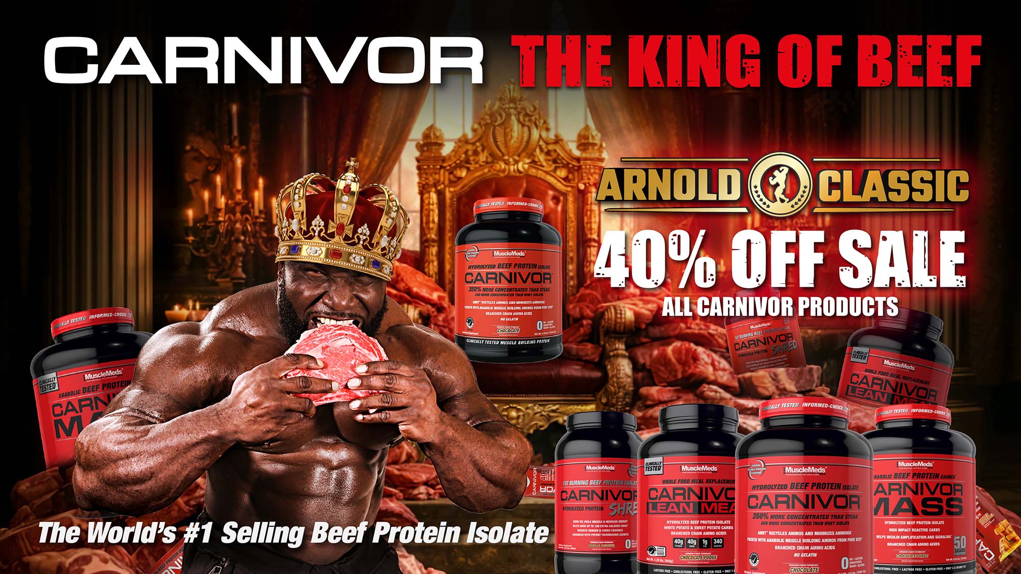 MuscleMeds presenta la cobertura de Arnold Classic 2026 de Generation Iron. Ahorre con un 40 % de descuento en todos los productos Carnivor.