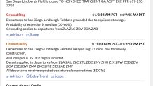 Se esperaba que la parada en tierra se implementara hasta las 9:45 am del jueves, aunque no estaba claro cuándo se declaró si la situación fue causada por el clima. Los funcionarios dijeron en ese momento que había entre un 30% y un 60% de posibilidades de que la parada en tierra se extendiera y, una hora más tarde, la ampliaron otra hora más, hasta las 10:45 am. A las 9 am, 123 vuelos se habían retrasado en SAN.